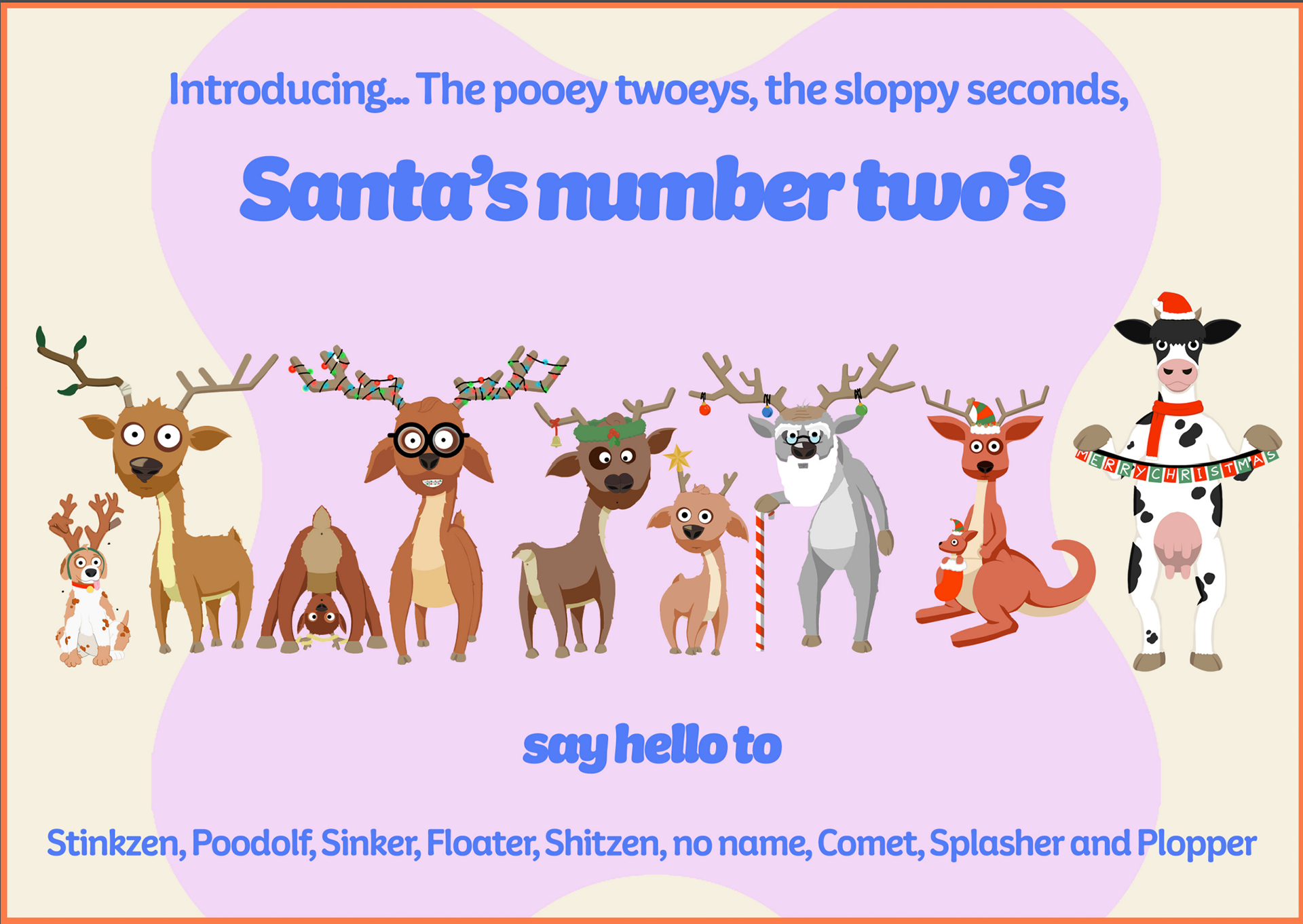 For this our team decided to create Santa's number 2s and "elite" team of backup reindeer (and other animals) to help deliver WGAC toilet paper and present all around the world.